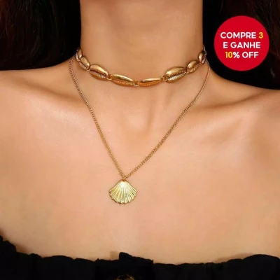 2 Camadas de Corrente com Colar de Concha para Jóias Femininas e Presentes de Moda