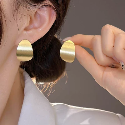 Brincos de Estudo Ovais Metálicos Vintage, Joia Minimalista Europeia para Mulheres