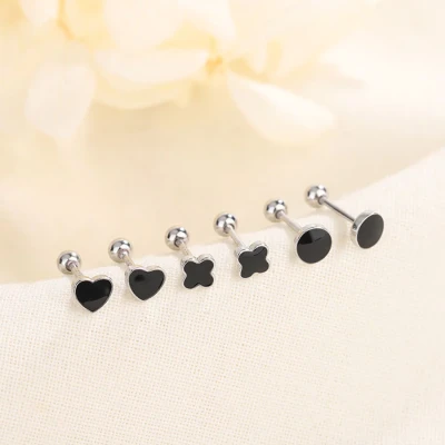 1 par de brincos de orelha de trevo preto pequeno com Design de nicho de moda feminino dormindo livre escolhendo coração