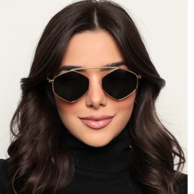 ÓCULOS DE SOL FEMININO ACESSÓRIO DE FESTA HEXAGONAL DIAMANTE METAL RETRÔ PARA PRAIA LENTE UV400 com Case