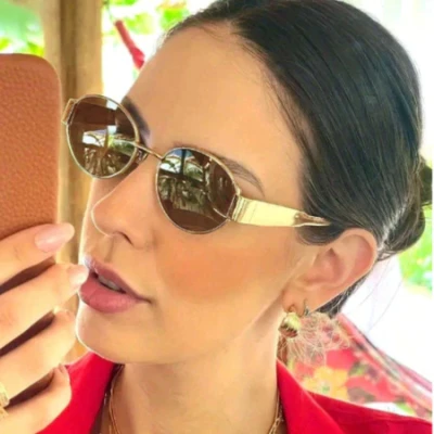 Óculos de Sol ARMACAO DE OCULOS Feminino Aro Oval Luxo Lente UV400 Moda Europa
