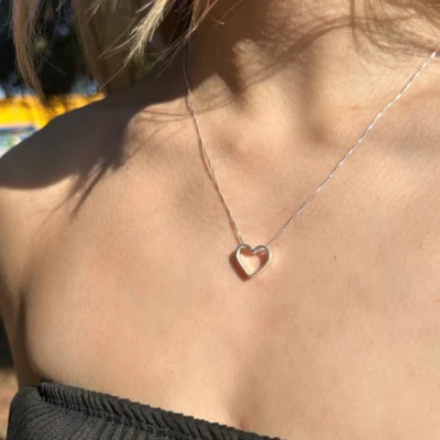 Colar Coração Vazado Feminino em Prata 925 - tipo Tyfanny
