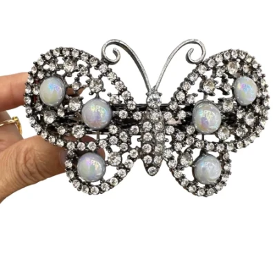 Presilha de Cabelo Borboleta Metal Grande Pérola