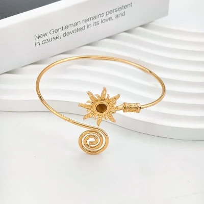 Braçadeira de girassol espiral de metal retrô com design transfronteiriço europeu e americano, personalidade, temperamen