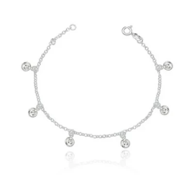 Pulseira Bracelete Feminina Pedra Zirconia Ponto De Luz Prata 925