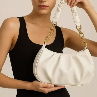Bolsa Baguete Feminina De Ombro Mão Média Zíper Alça Corrente Nuvem Moda 2025 Clássica Couro Festa