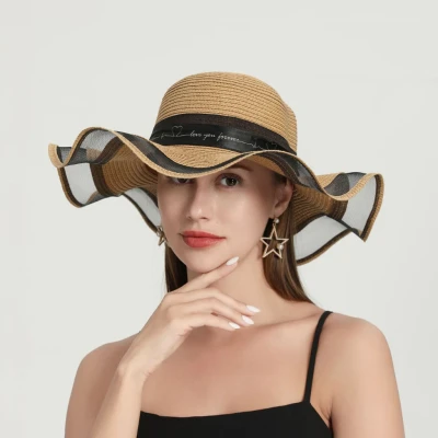 Chapéu Feminino Praia Sol Aba Larga Palha Flexível Moda Verão