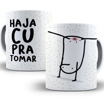 Caneca Porcelana Flork Meme Haja Cu Pra Tomar Personalizada 325ml
