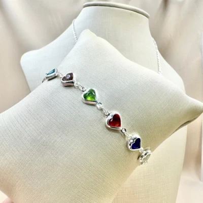 kit colar+pulseira coração pedrinhas coloridas folheado a ouro e prata