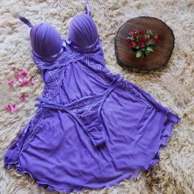 Camisola com Bojo confortável Calcinha Fio dental Linha noite sensual e Leve Pijama Feminino Langerie Lingeries Sensuais Soutien